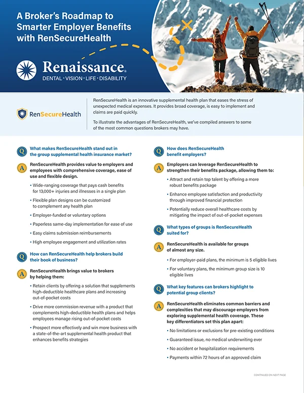 Delivering exceptional ancillary benefits has been our focus at Renaissance since day one. So, whether you’re looking for benefits for employer groups or individuals, or you work with both, we’re ready to help you succeed. Our trailblazing products, technology and support solutions are all part of our ongoing commitment to ensure you Stand Out today and tomorrow.